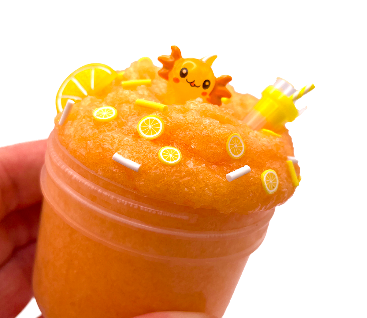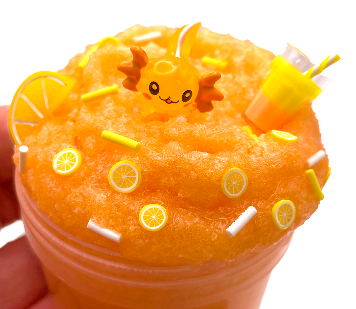 Axolotl Sunrise is a super crunchy snow fizz slime, great for asmr pops and sizzles. Comes with an axolotl charm, drink charm and decorative fimo slices
