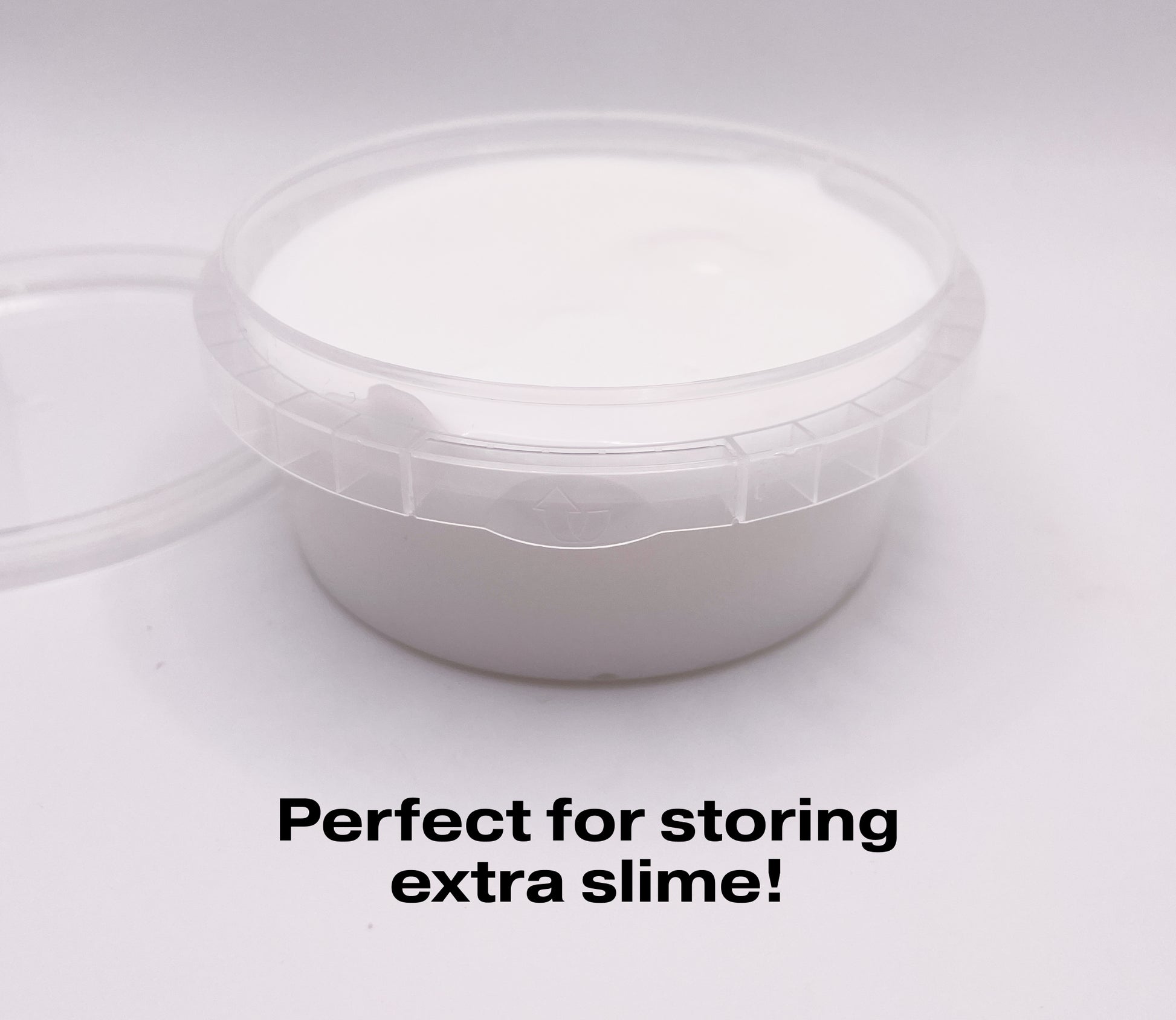 Shallow tamper-proof containers to store any additional slime, such as from inflated slime that doesn't fit it in its original pot, or for storing your own slimes!