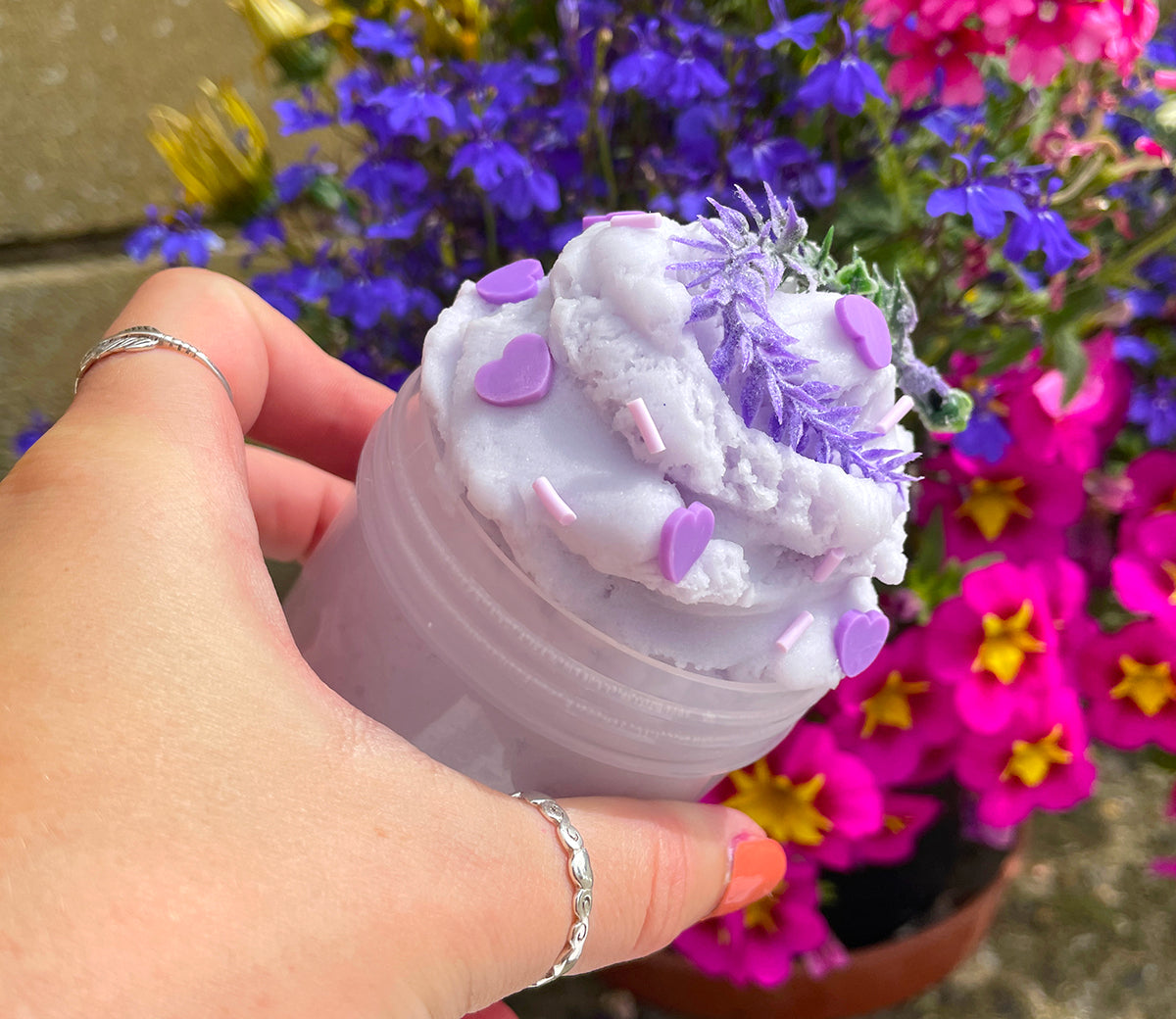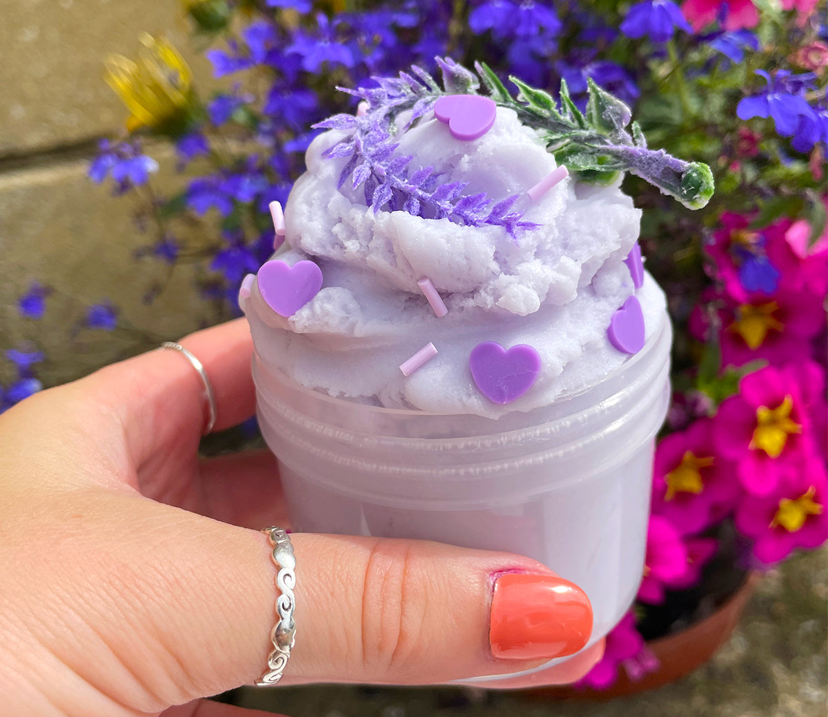 Introducing 'Lav of My Life', a lavender-scented cloud slime that is perfect for Valentine's Day. This slime is not only fun to play with, but it also has a calming and soothing scent of lavender that will help you relax and unwind. Whether you're feeling stressed or just need a break from the chaos of everyday life, this slime is the perfect way to unwind and de-stress.