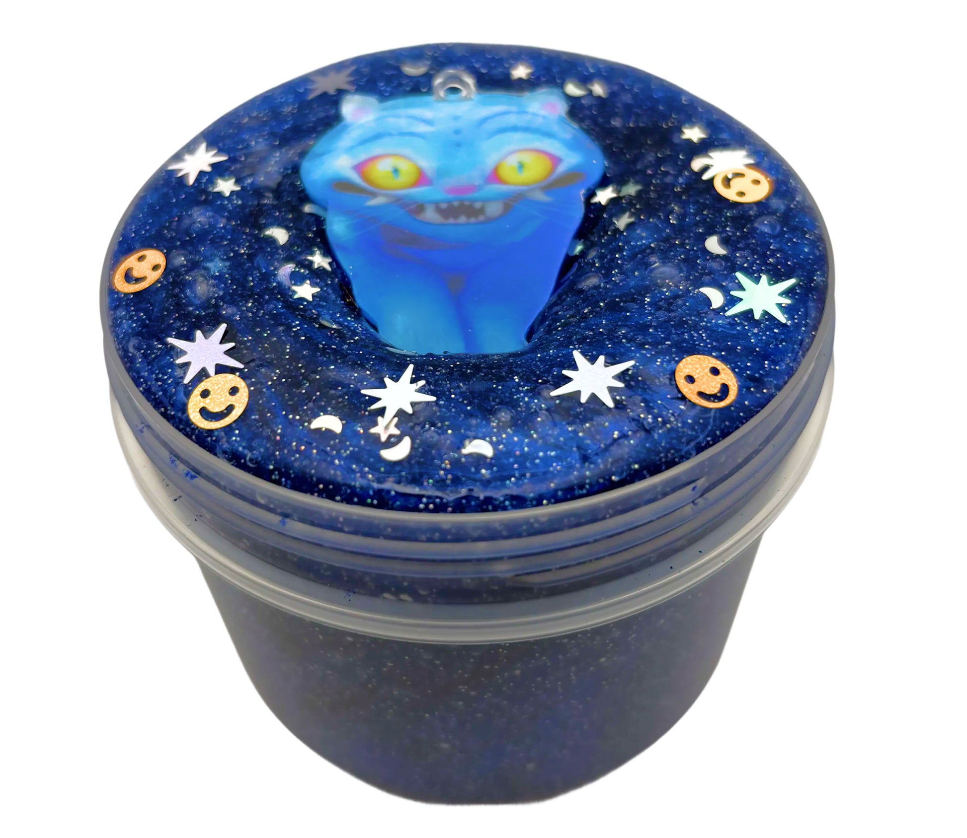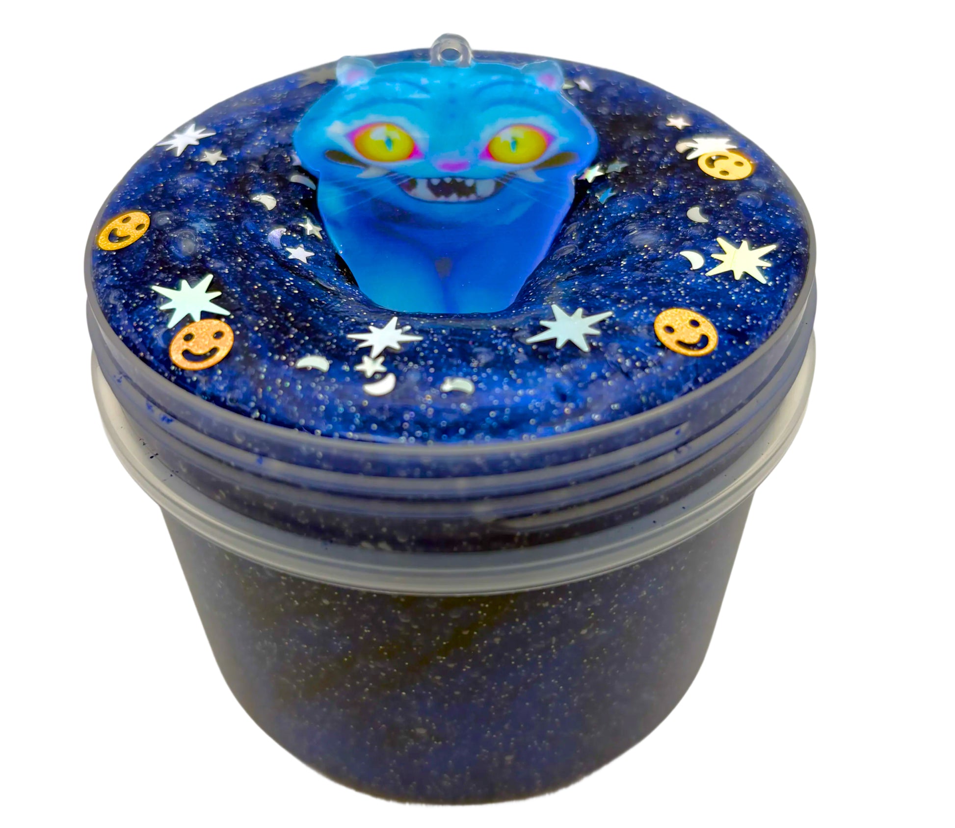 Soul Snatcher is a clear blue pigmented slime inspired by Derpy the cat from K-Pop: Demon Hunters. Smooth, glossy, and packed with shimmer, it captures Derpy’s mischievous, otherworldly energy. Perfect for anyone who loves the film!!