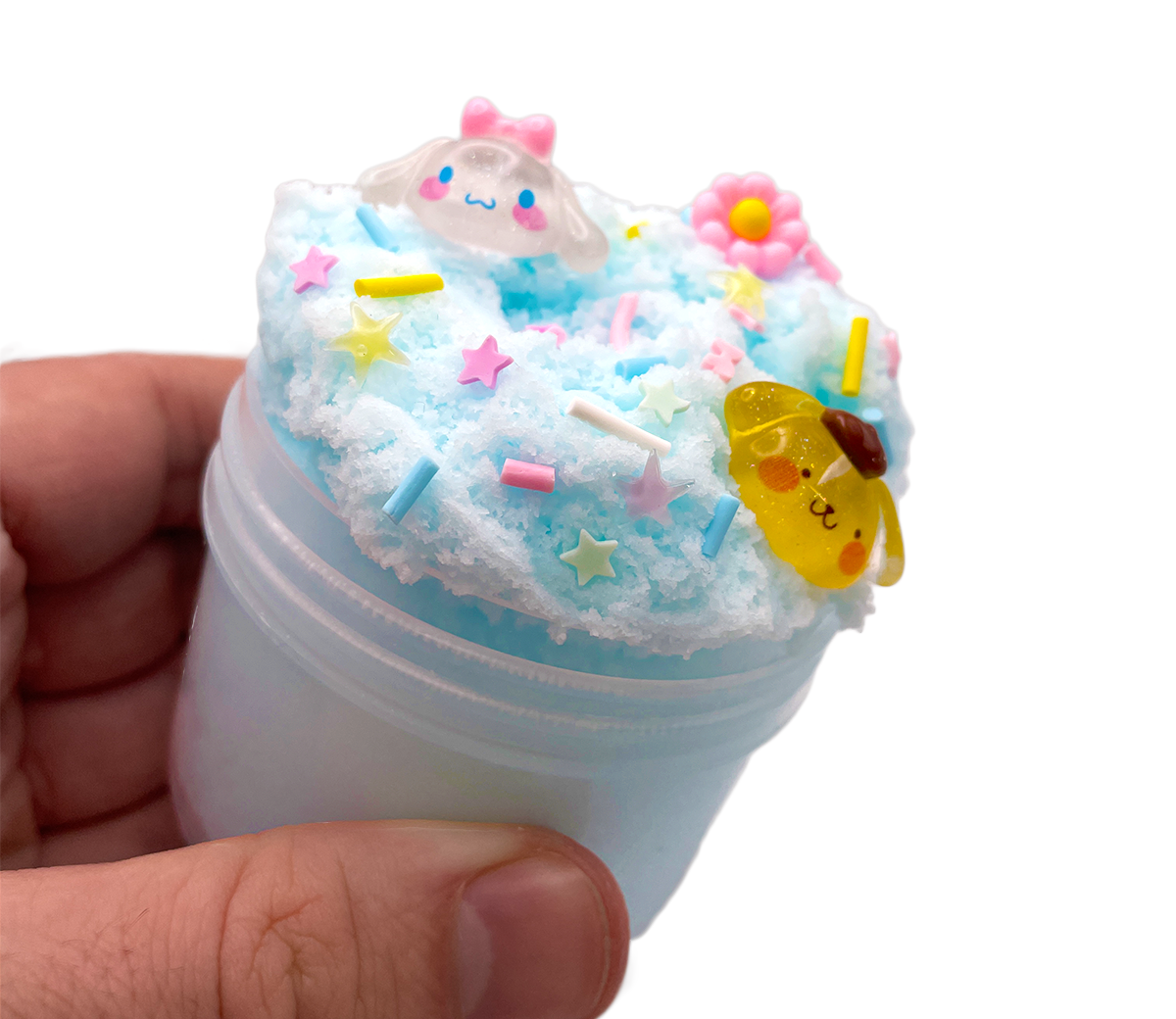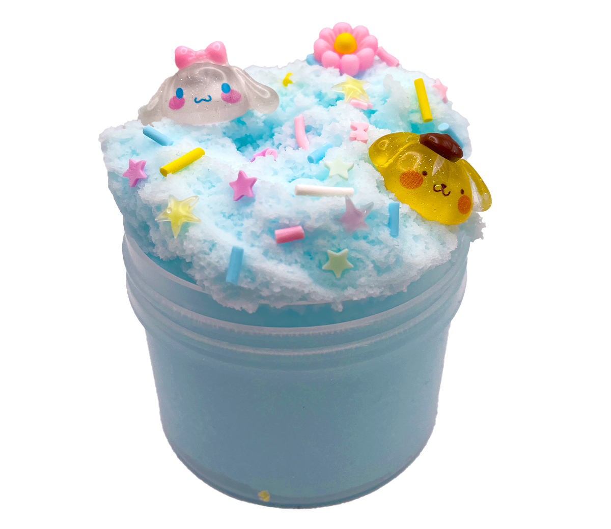 Sweet Sky Pudding is a cute sanrio-inspired cloud slime, scented and coloured baby blue. It comes with a cute sanrio character charm (cinnamoroll, purin or any of the others!) and fimo charms.