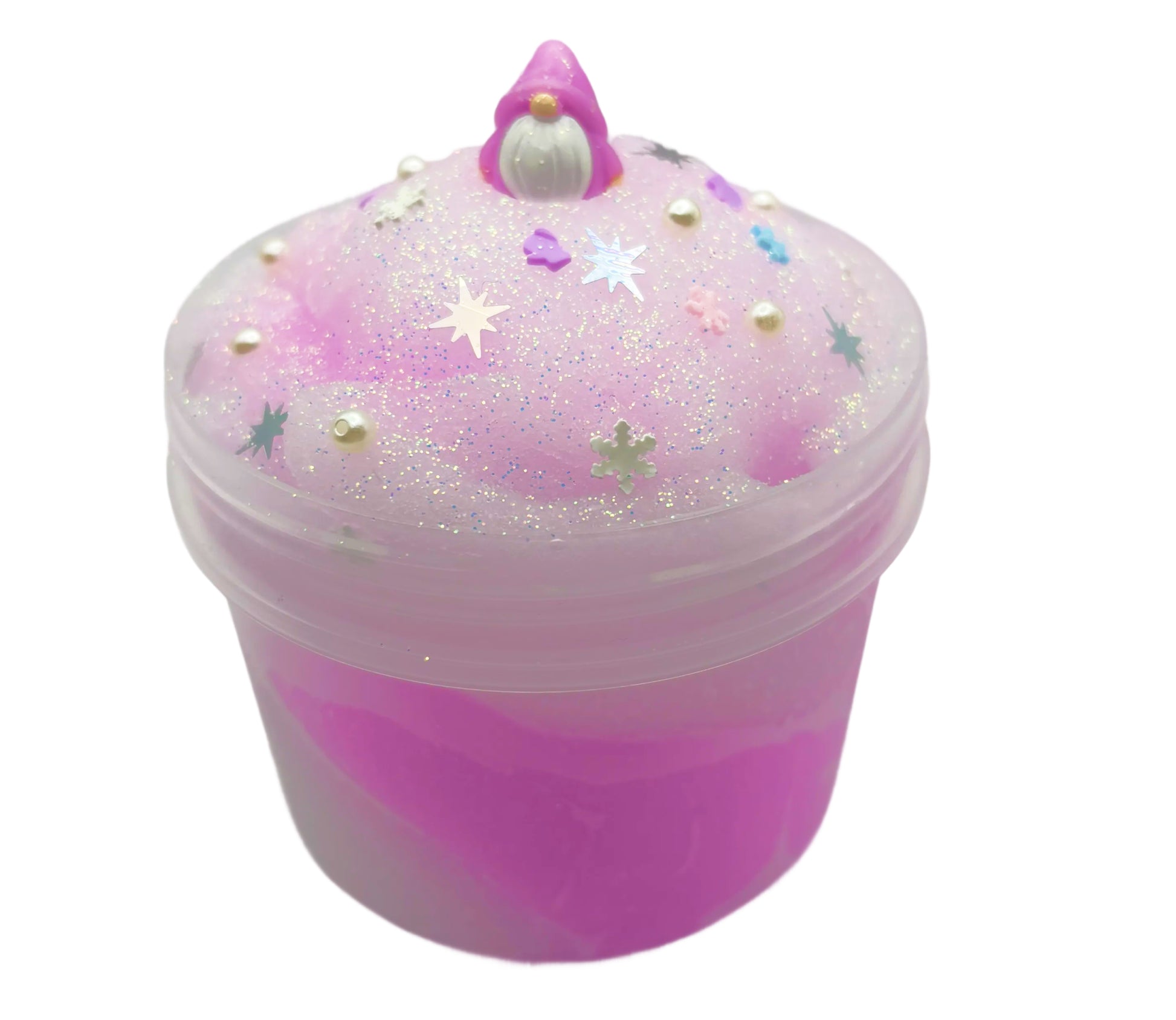 Winterberry Gonk is a pink and white icee slime with a soft, frosty texture and subtle shimmer. Topped with a pastel gonk charm, pearls, and snowflake glitter, it’s a smooth and fluffy winter slime that feels calm, cozy, and perfectly seasonal.